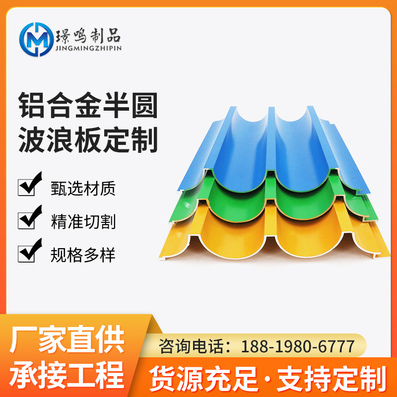 批发纯色简约铝型材防潮耐高温外墙装饰铝合金半圆波浪板